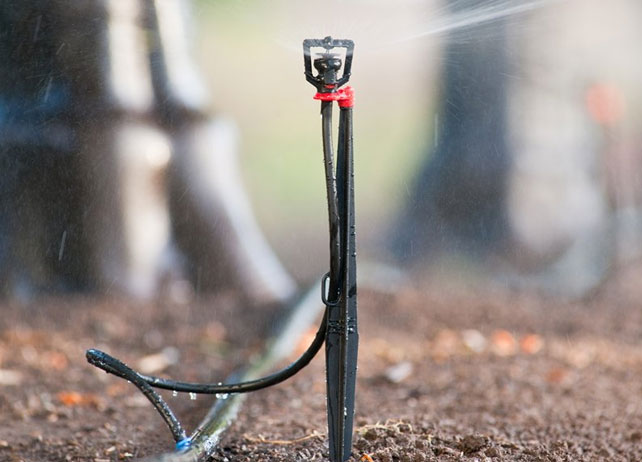 K rozvětvení PE polyethylenové hadice jsou zapotřebí T, L kusy, Tím, že má hadice menší průměr, je více flexibilní a dá se poměrně snadno přisunout i na těžší dostupná místa,